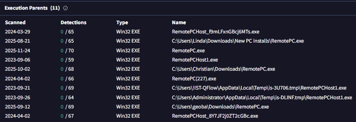 I would then dig through the sandbox reports for extracted files, network connections, DNS requests, through the in memory strings to see other potential files tied to the RMM solution, additional folder paths, etc.